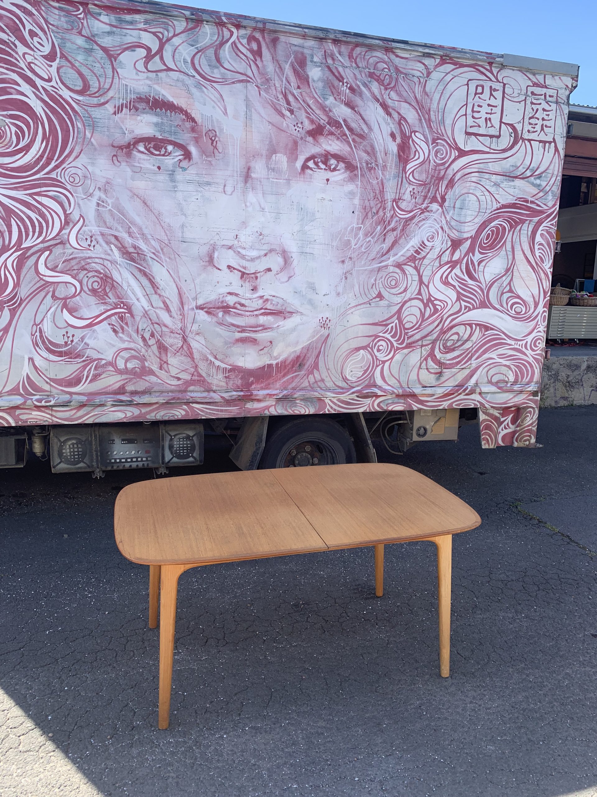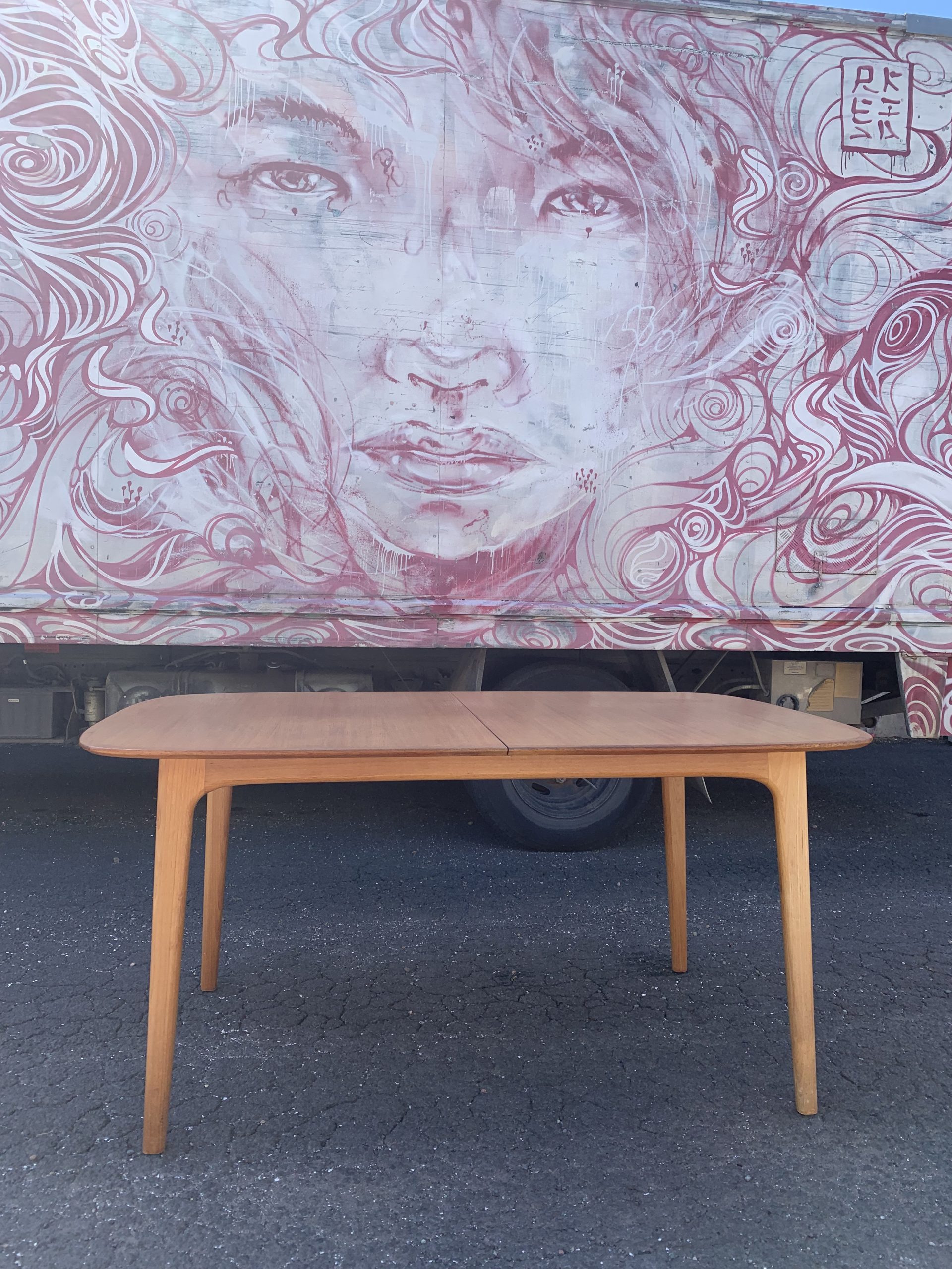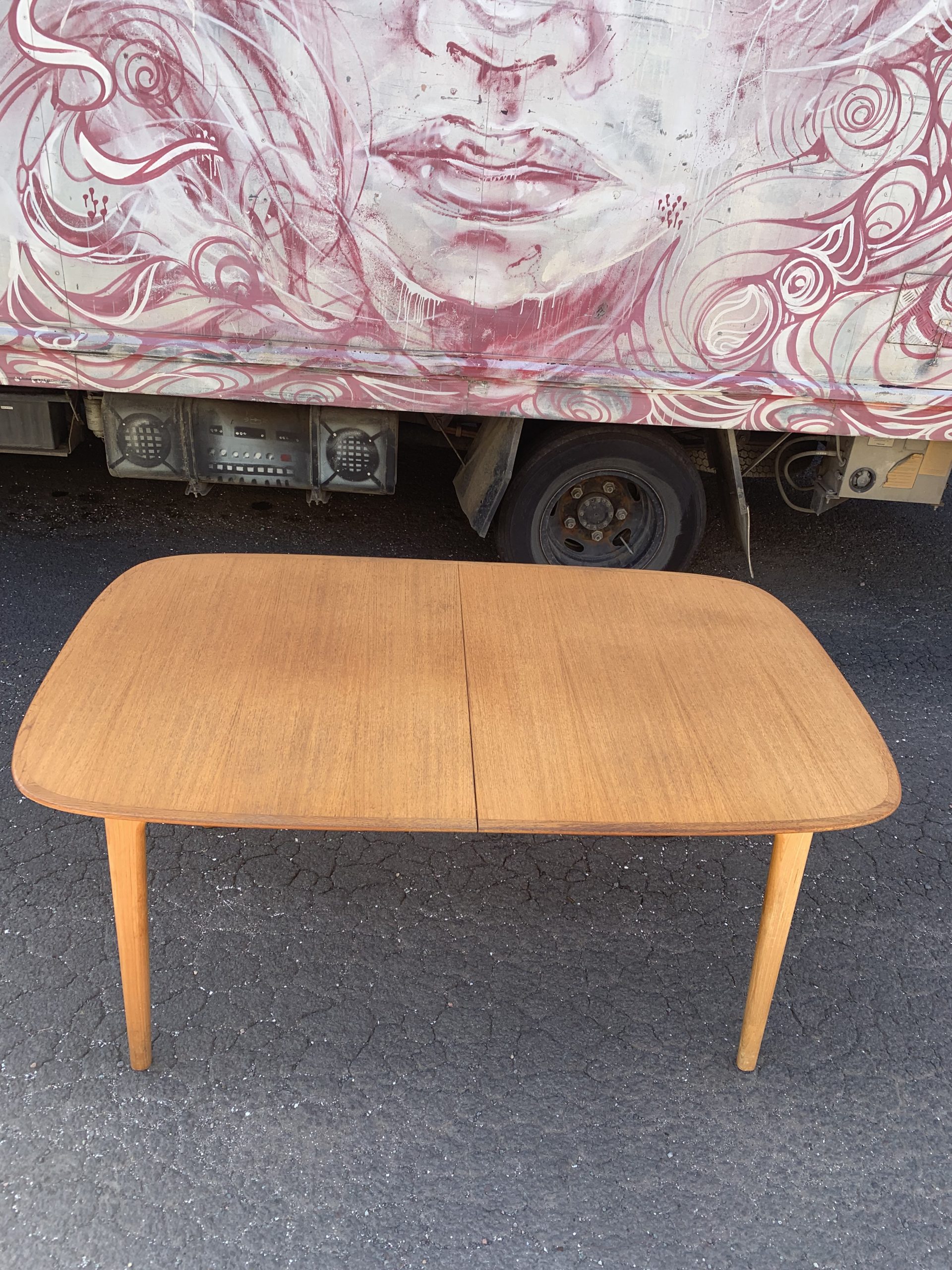 Beautiful locally designed and made dining table from the 1960’s. Solid wood frame with fold away butterfly extension in original condition.