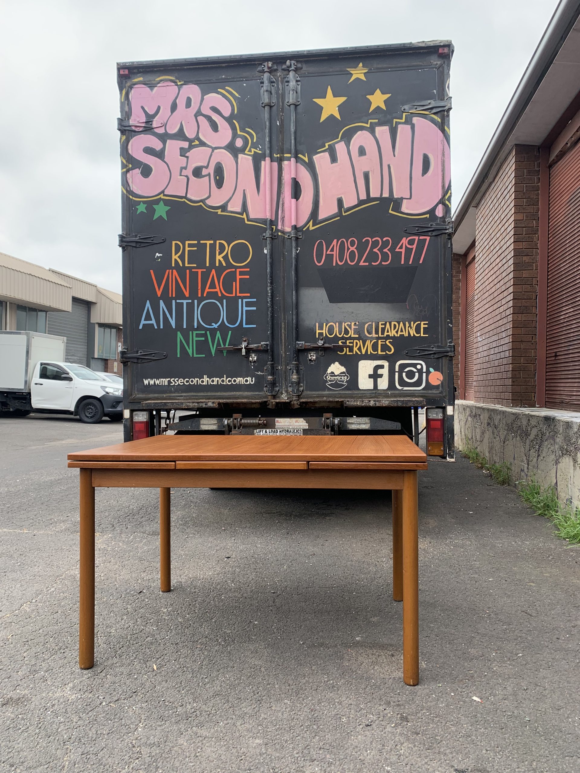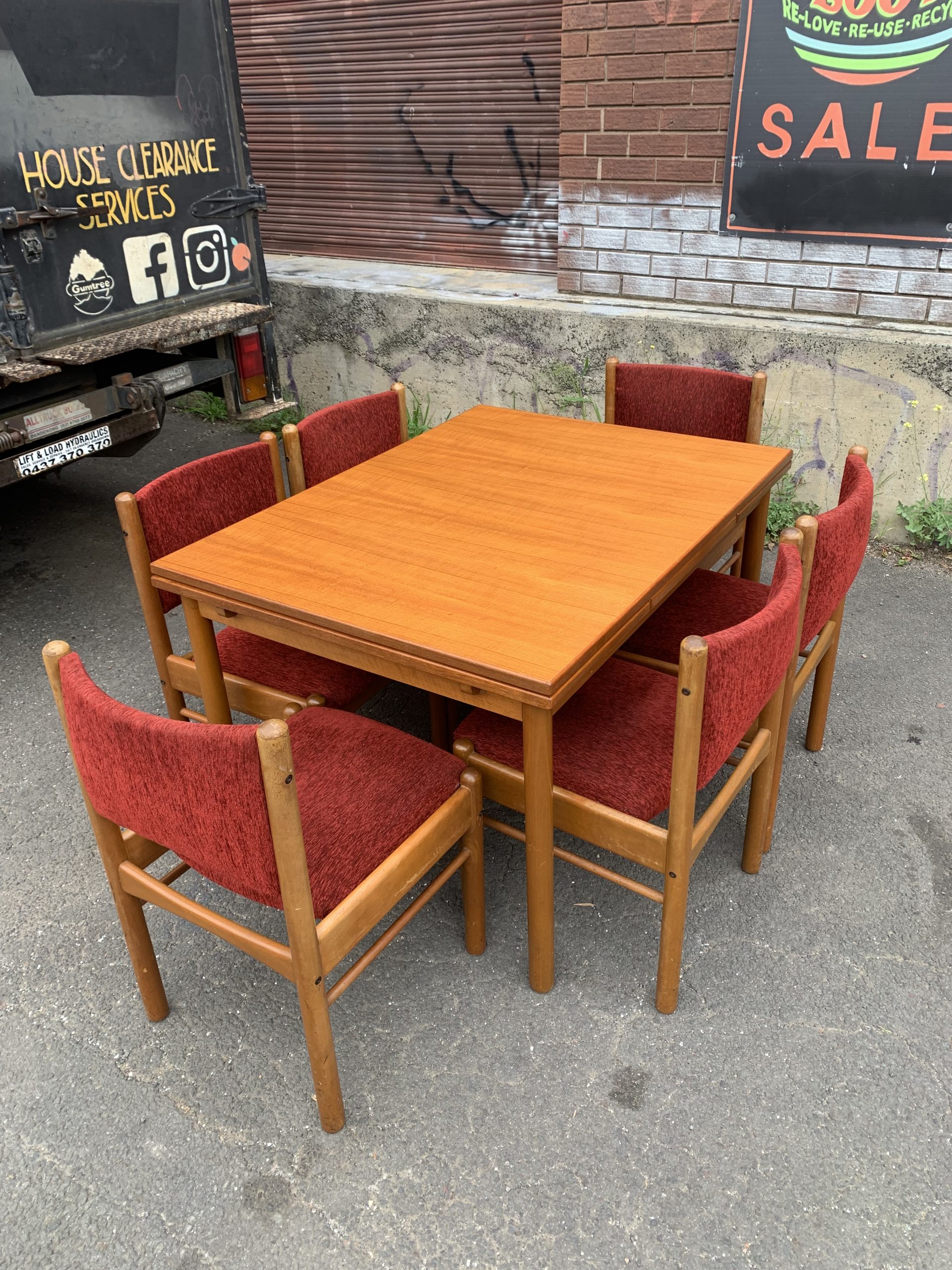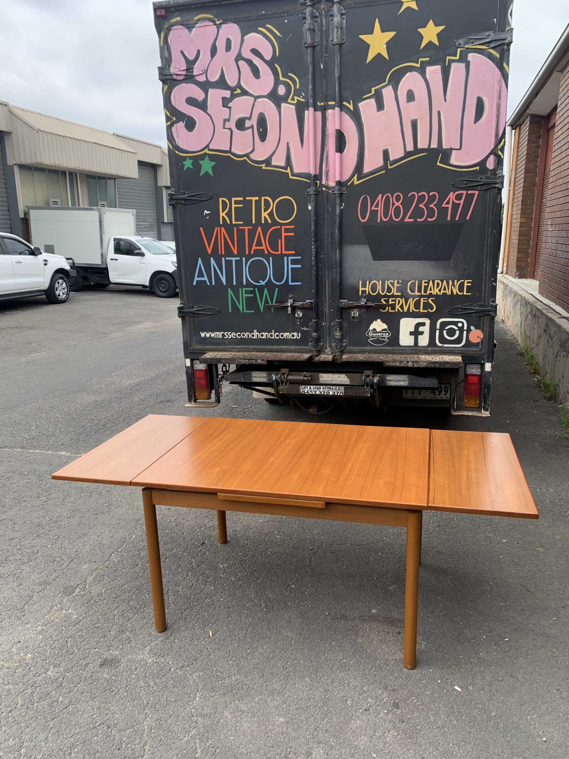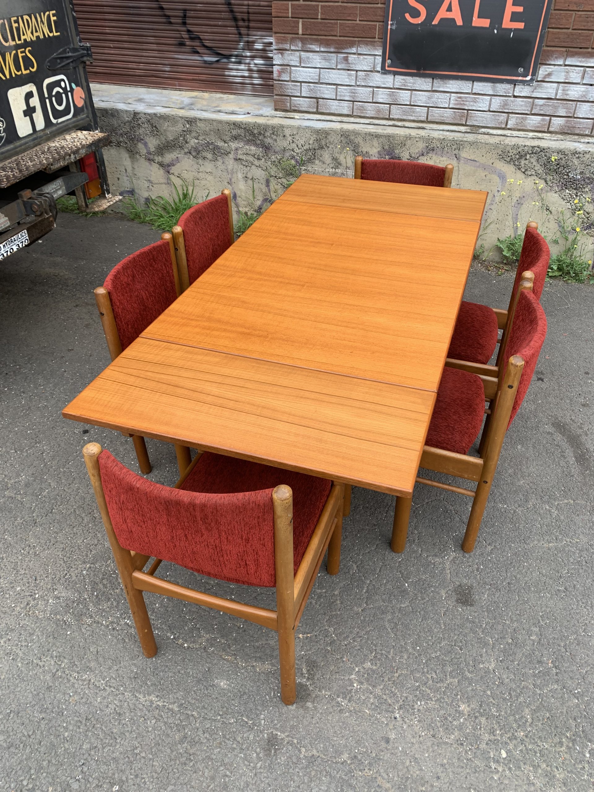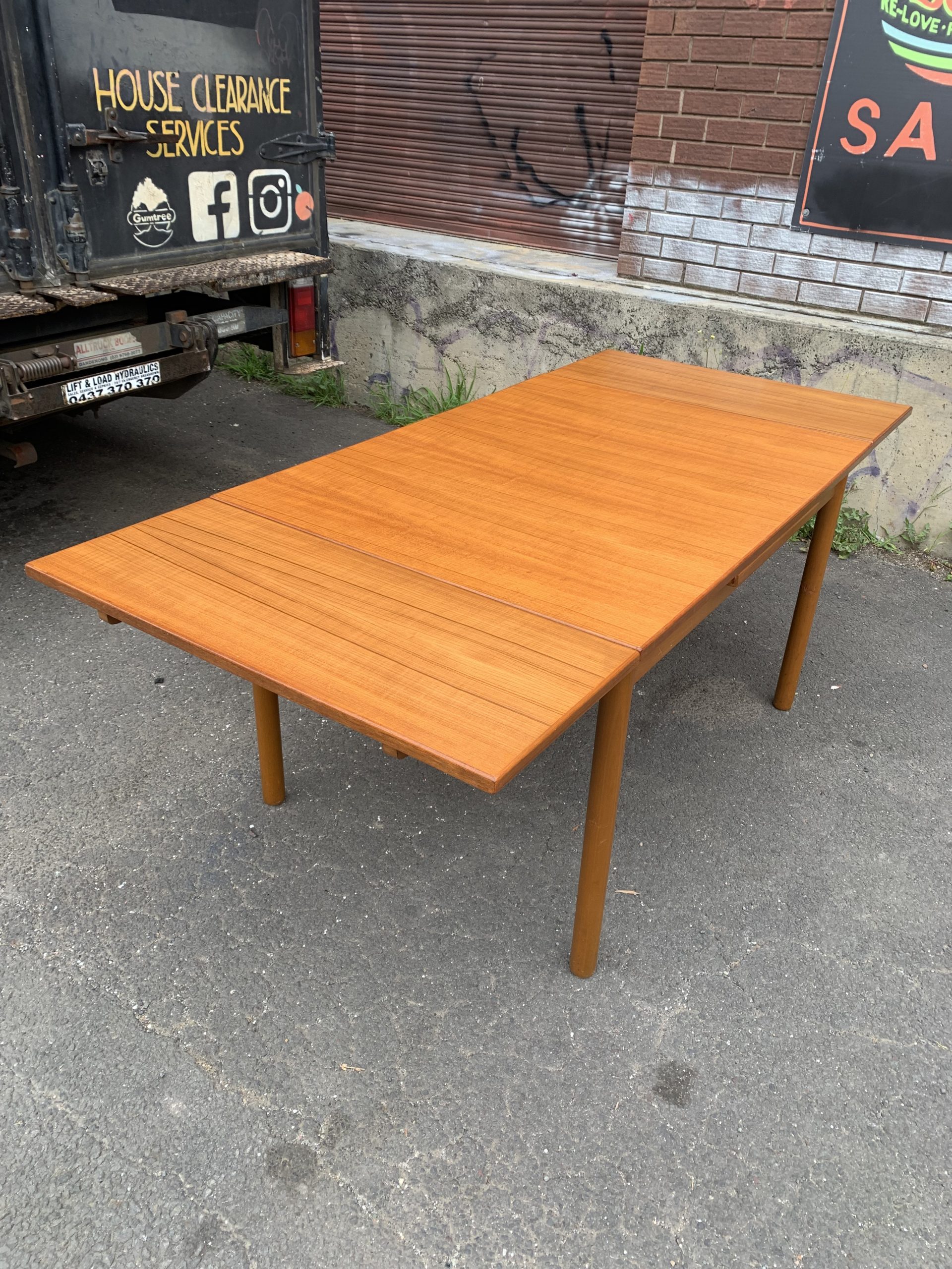 Vintage MCM 6-8 seater teak draw leaf dining table. $799