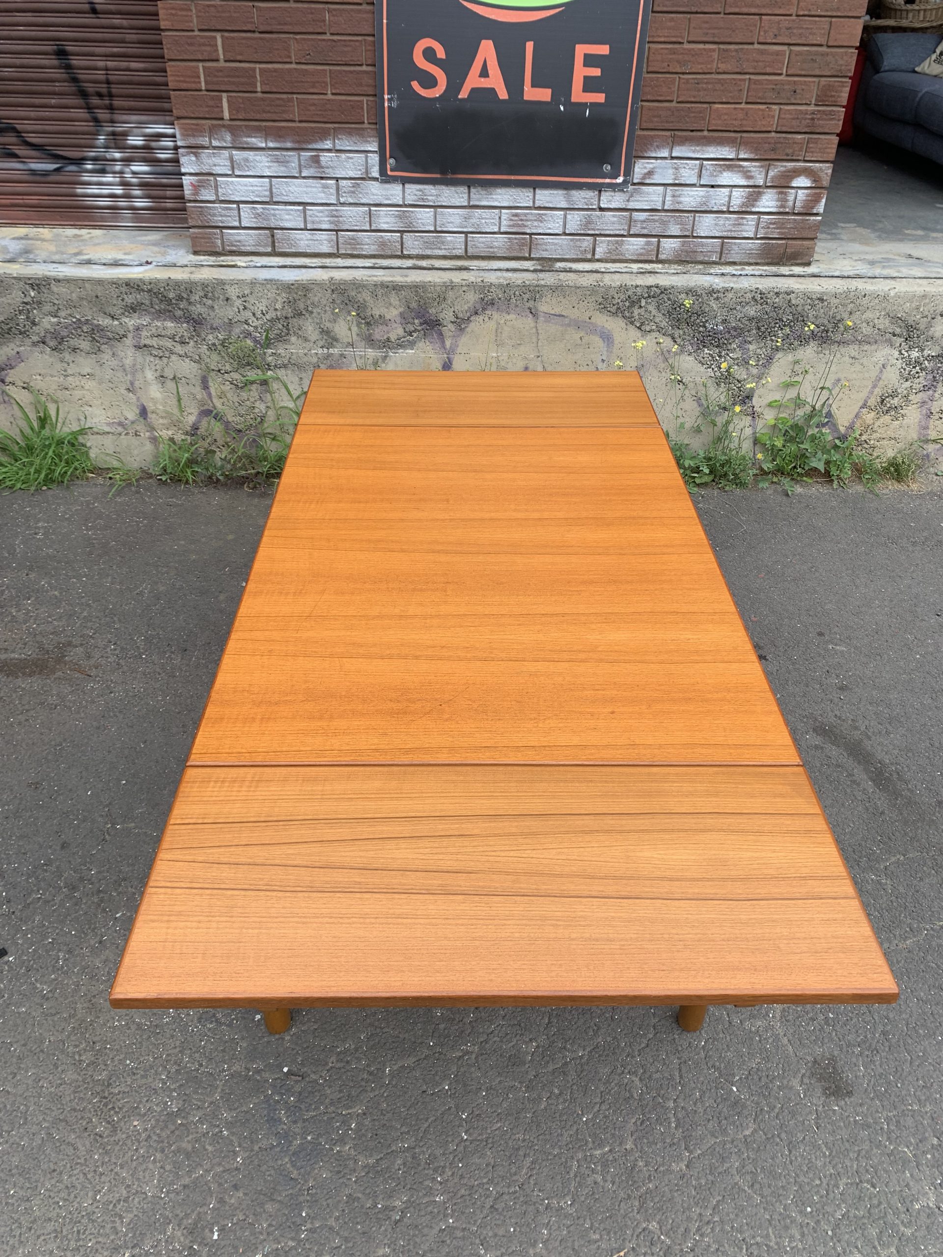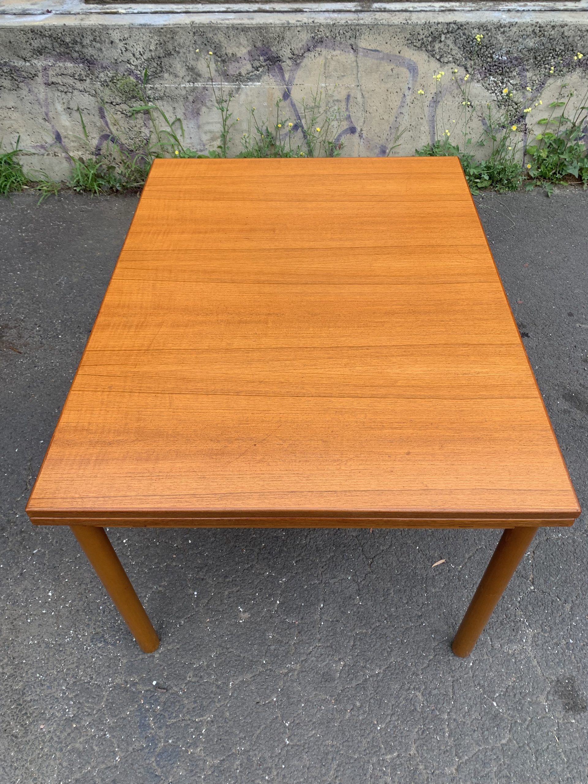 Easy and smooth slide out extensions in excellent condition with beautiful teak grain.